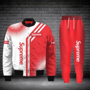 Splendid Red White Bomber Jacket Sweatpants Pants Luxury Clothing Clothes Outfit For Men HT